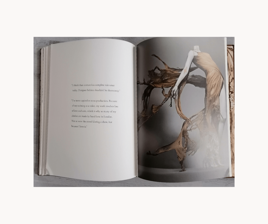 Andrew Bolton hatte die Aufgabe den Ausstellungsband zu schreiben und das ist ihm gelungen. Das Buch befasst sich hervorragend mit McQueen als kreativem Designer, als Künstler und Visionär der Laufstegkunst. Da es 2011 noch sehr nah an McQueens Schaffensphase war, sind viele seine Kontroversen nicht in die Betrachtung eingeflossen – was verständlich ist. Ist das aber gut? Das finde ich nicht, denn McQueens problematisches Verhalten gehört ebenso zu seiner Biografie wie sein künstlerisches Schaffen und beeinflusste viele seine Arbeiten.
