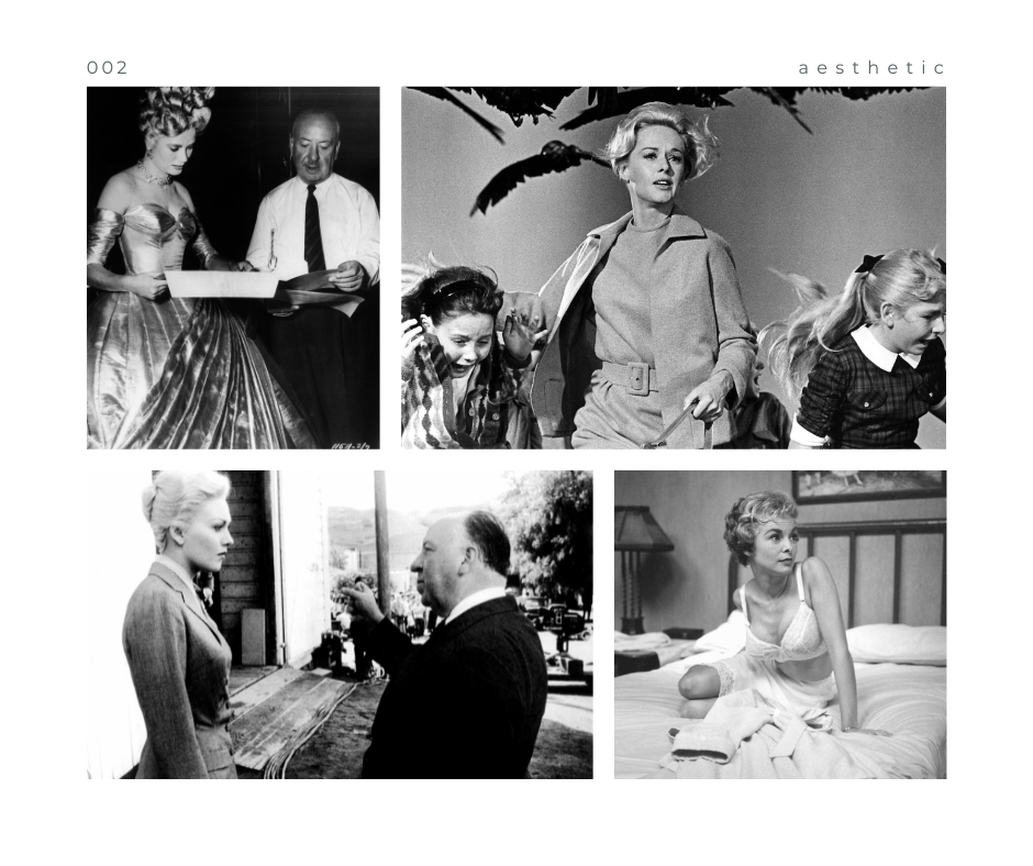 Für den Regisseur von 52 Filmen war es wichtig, eine visuelle Sensation zu schaffen. Dies gelang ihm durch eine Inszenierung, die aufgrund ihrer unterbewussten Wirkung auf den Zuschauer revolutionär war. Alles, vom Kamerawinkel bis zur stimmungsvollen Farbgebung, war ein sorgfältig ausgeklügelter Plan. Hitchcock hatte eine genaue Vorstellung davon, wie er seine Geschichten erzählen wollte. In jedem Hitchcock-Film gibt es eine stilvolle weibliche Figur mit eiskaltem Auftreten: die Hitchcock-Heldin.