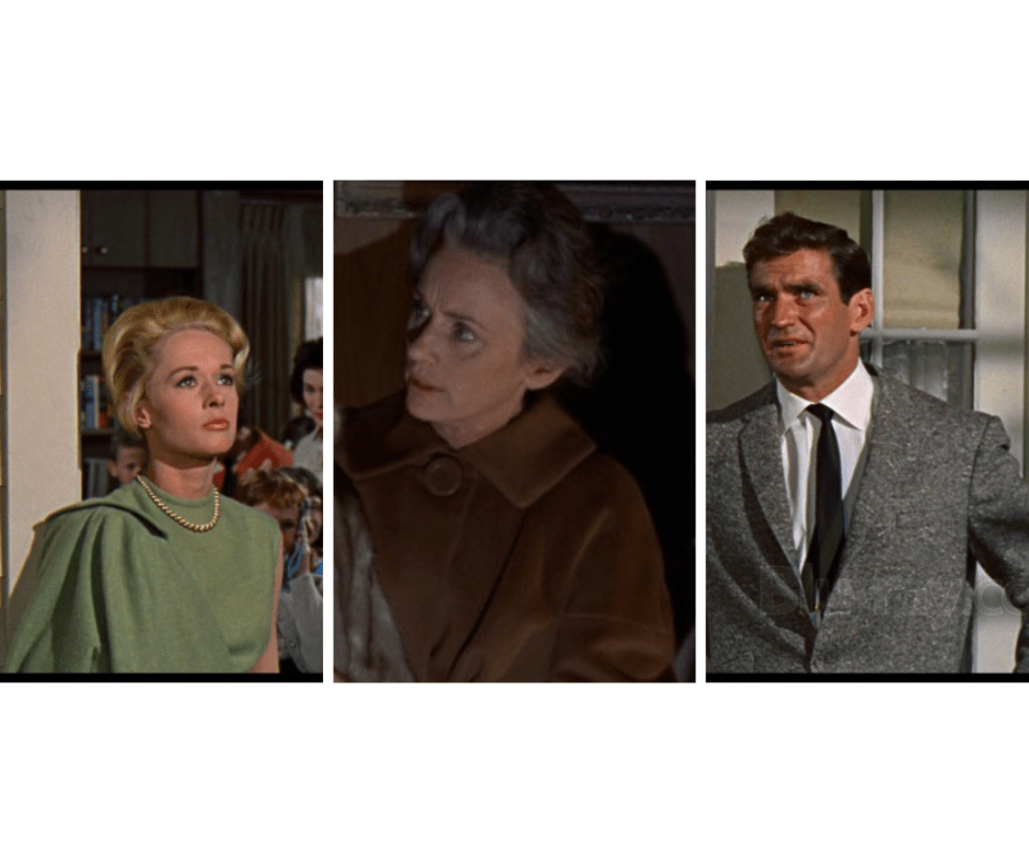 Es gibt aber auch noch eine Weitere Eben, die ein typisches Element von Hitchcock ist: Oedipus. Auch diese Thematik sehen wir in diesem Film, auf einer zwischenmenschlichen Ebene, wenn es um die Beziehung von Mutter und Kind geht. So wird die Mutter von Mitch als eine anhängliche, von Verlustängsten geplagte Frau inszeniert, die jede Beziehung ihres Sohnes unterbindet.